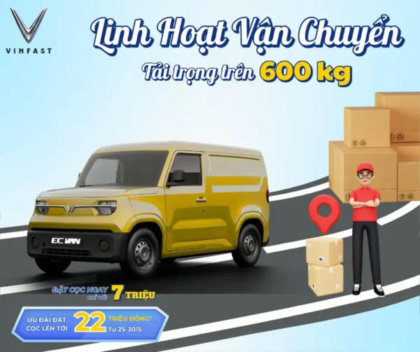 VinFast EC Van là dòng xe tải điện thương mại tiên phong tại Việt Nam, mang đến giải pháp vận chuyển linh hoạt, êm ái và tiết kiệm chi phí vận hành. Với thiết kế nhỏ gọn, hiện đại và đa dạng màu sắc (Xanh, Vàng, Trắng, Đỏ), EC Van không chỉ phù hợp vận chuyển nội đô mà còn đáp ứng tốt nhu cầu kinh tế hộ gia đình và doanh nghiệp.